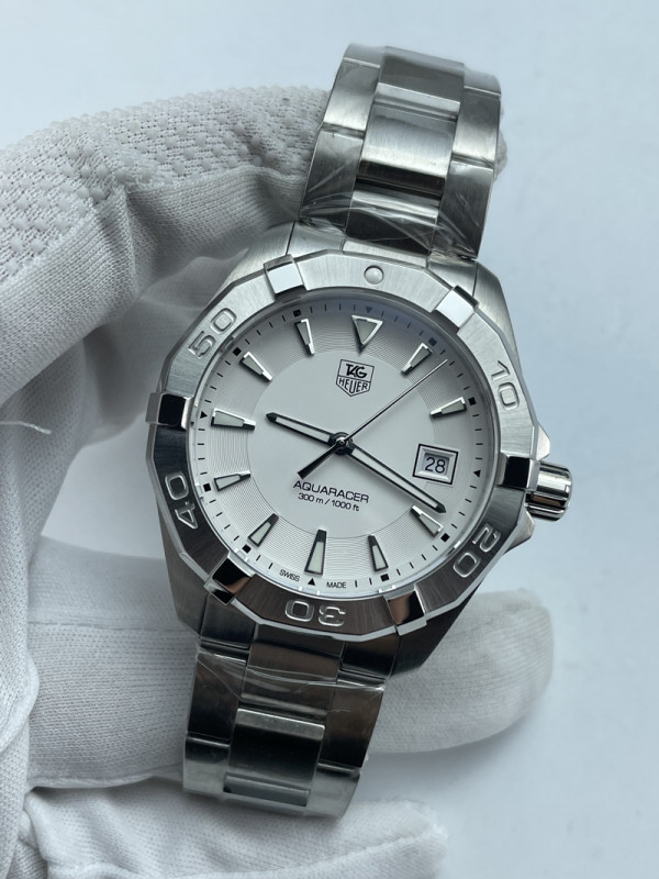 (준비완료/특급배송)NO.3580/신공장 태그호이어 아쿠아레이서 300M 쿼츠 스틸 화이트다이얼